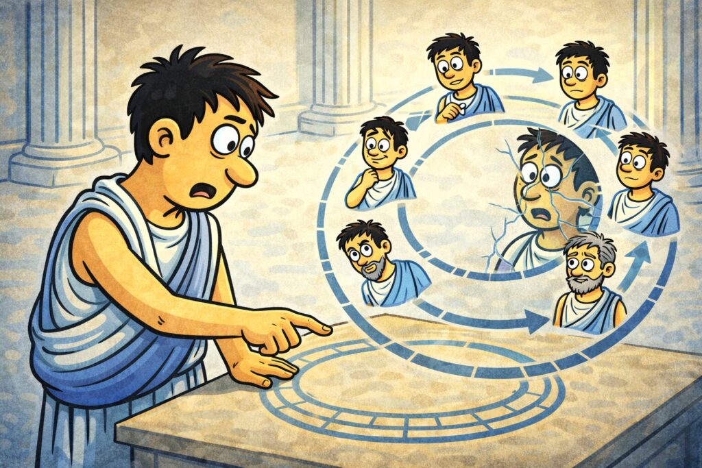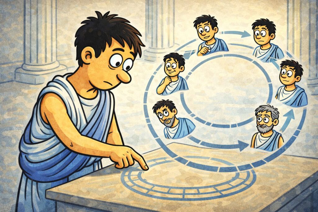 そこへ、ローマの7年周期説や、高価な鏡を割ると年単位で損をするという現実の記憶が重なります。