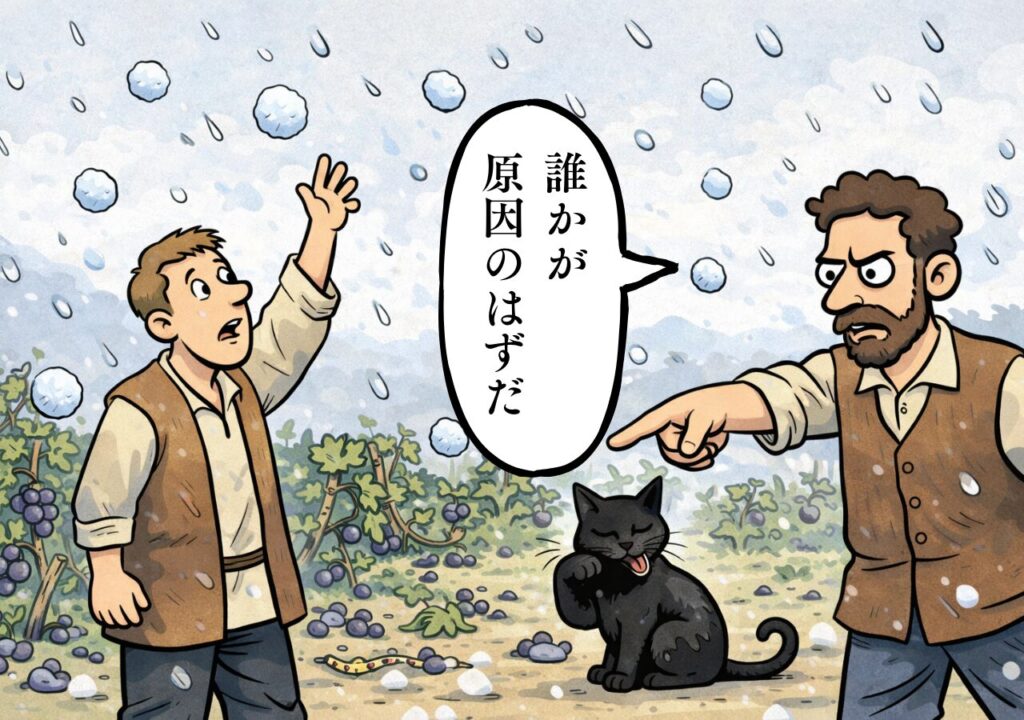 ある朝、ブドウ畑が全滅していたとします。