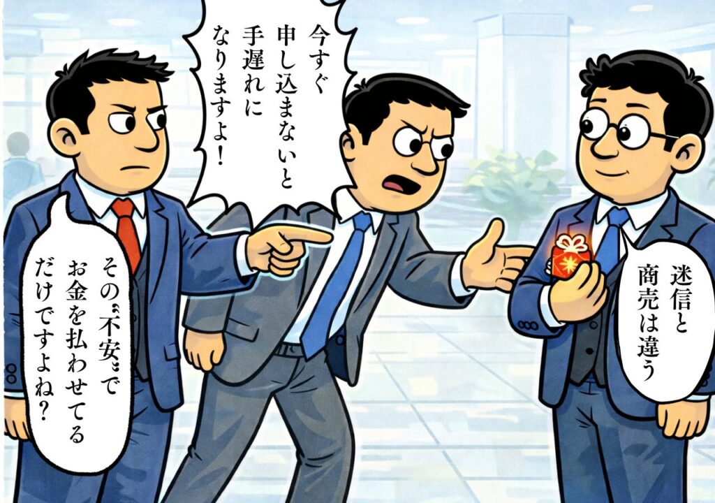 しかし、不安をあおって依存させるものは、もはや迷信というより商売です。