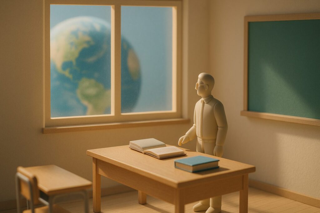 先生たちは新しい内容を教えようと奮闘しながらも、自信や時間が足りずに立ち止まっています。