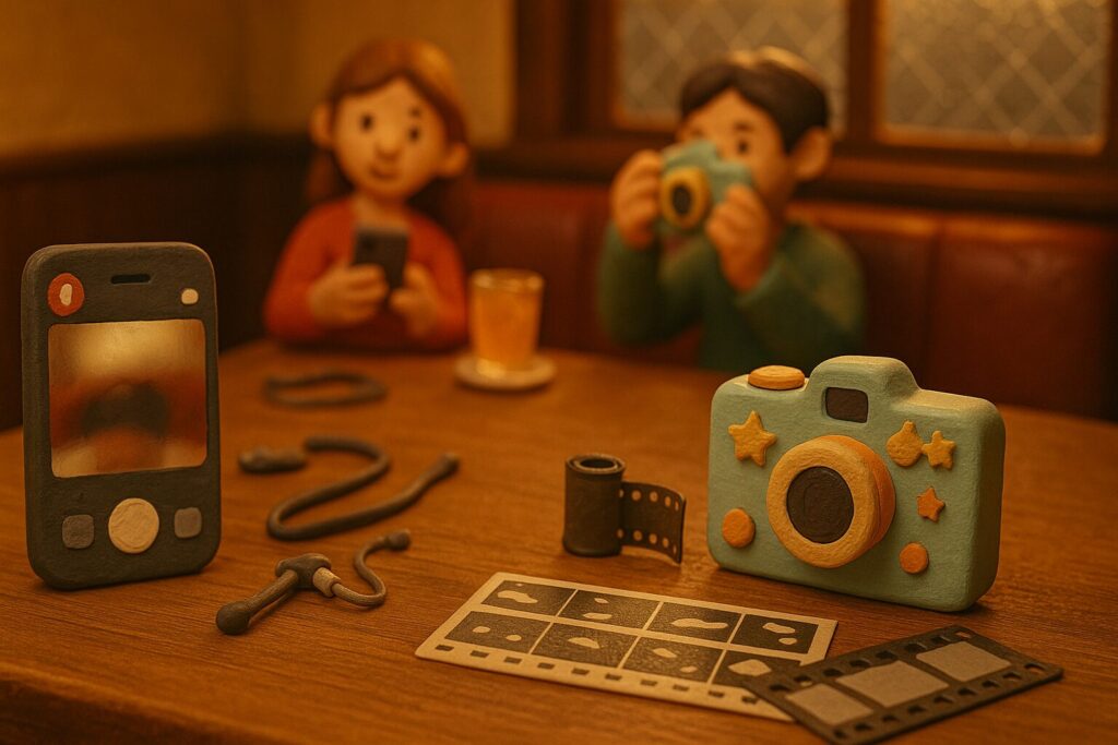 - フィルム → 枚数制限・現像するまで見られない・でも“エモい”