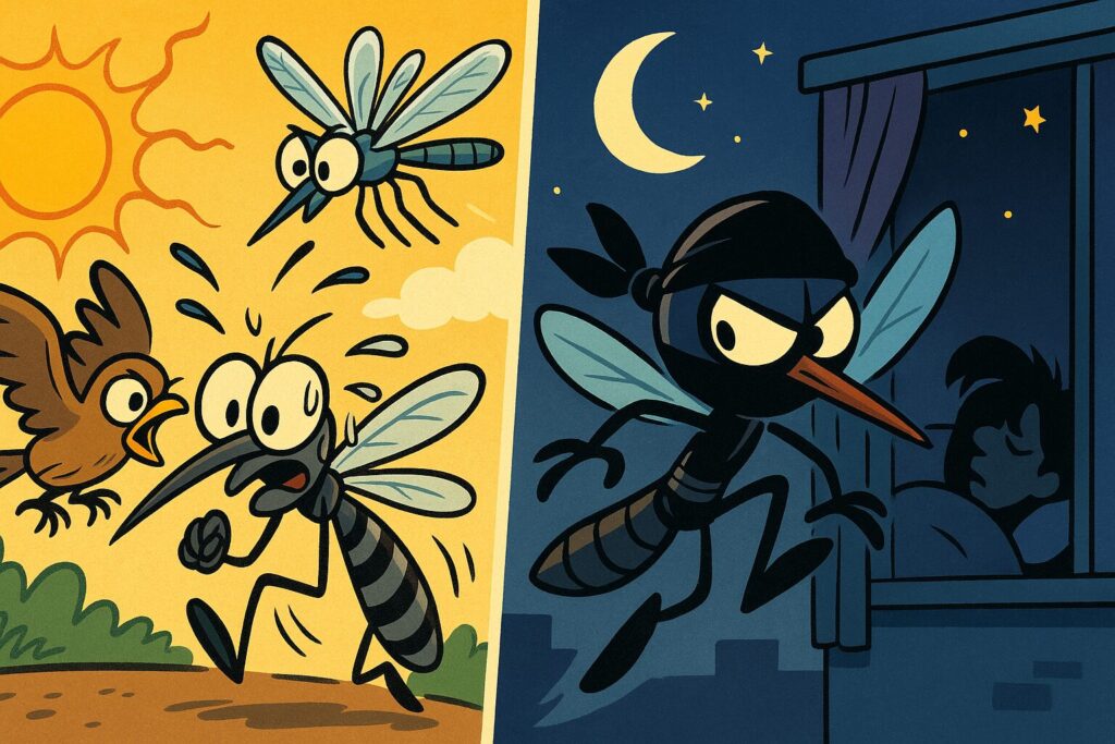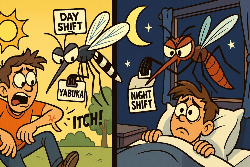 まずひとつハッキリさせておきたいのは、蚊は“夜専門スタッフ”じゃないということ。