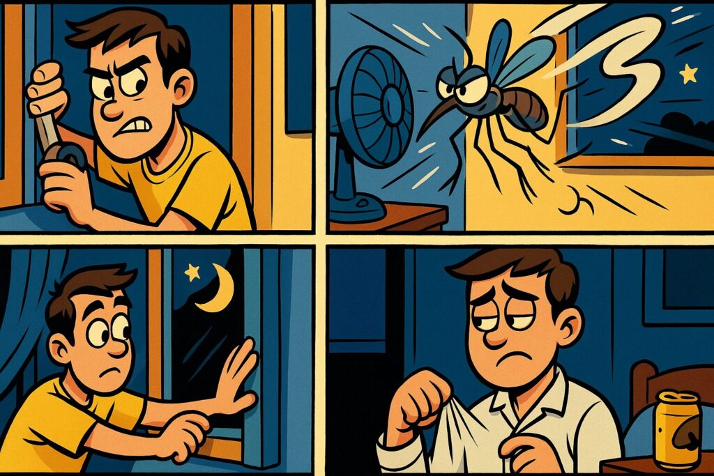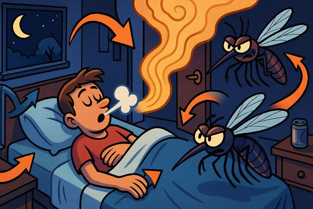 CO₂やにおいがこもった寝室は、蚊にとって“高級レストランの香り”みたいなもの。換気だけで難易度が下がります。