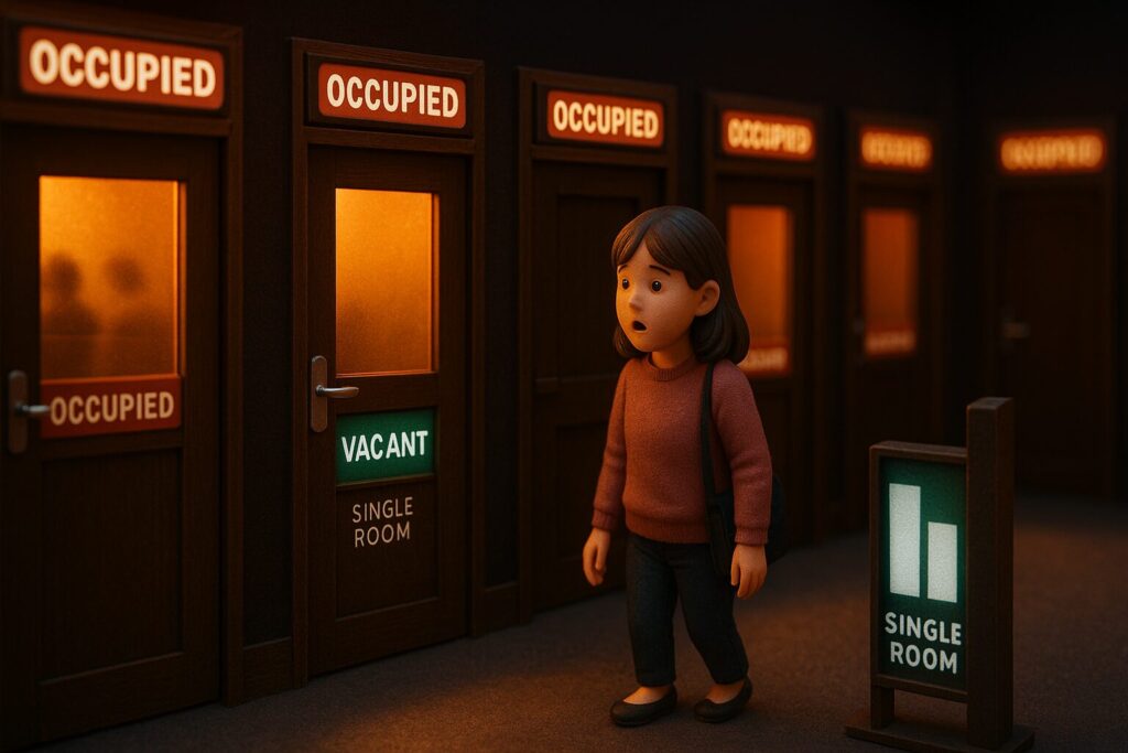 「団体さんは満室なんですが……お一人様なら、すぐご案内できます」