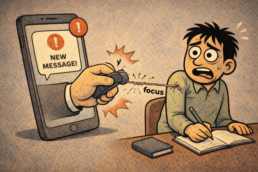 スマホの通知一発で集中力が蒸発します。