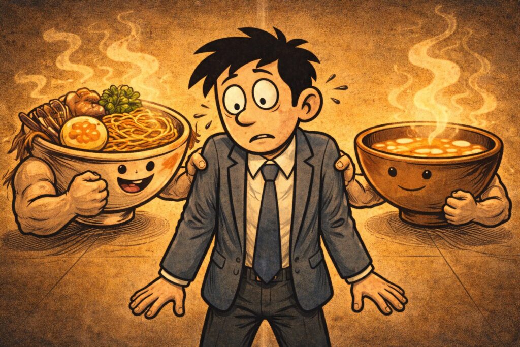 ラーメンのスープがテンションで肩を掴んで揺さぶってくるなら、味噌汁は静かに隣に座って