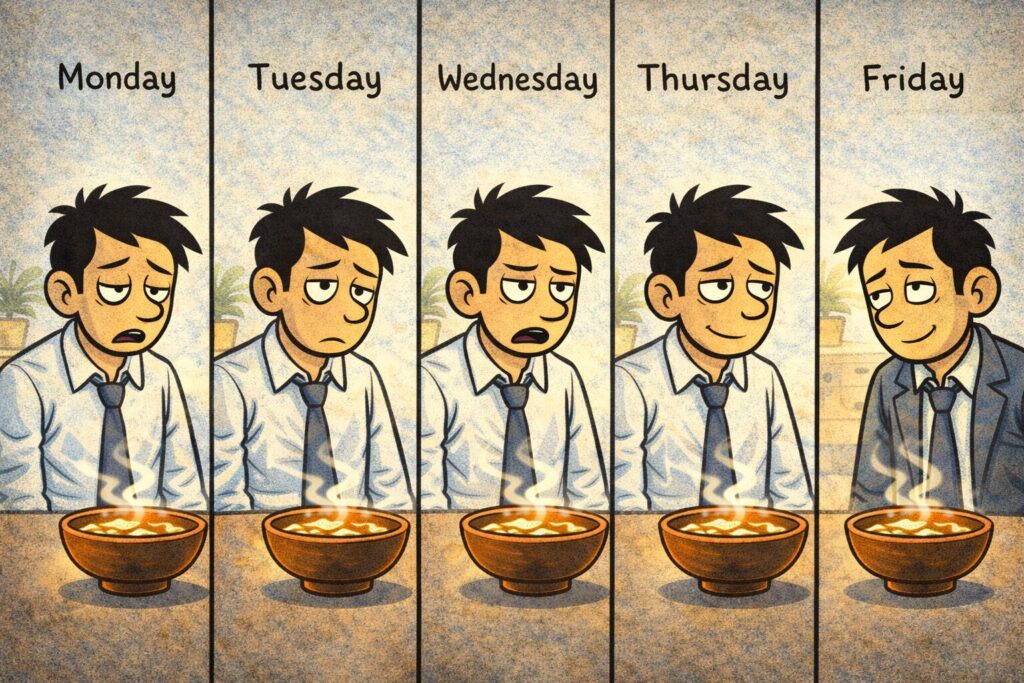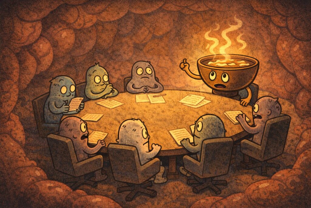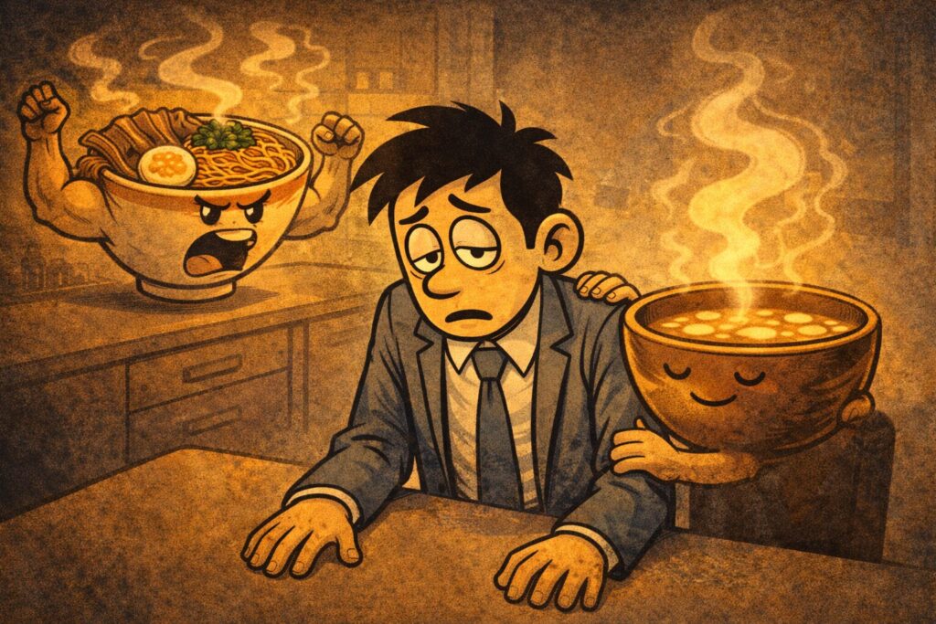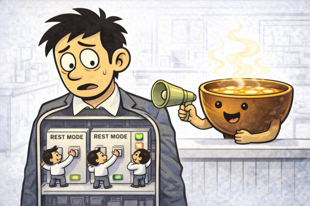 味噌汁は、温度・香り・うま味・発酵・習慣という五重構造で、私たちの心と体を取り囲み、逃げ道をふさぎ、「ほら、落ち着け」と説得してくる、わりと手強い存在なのです。