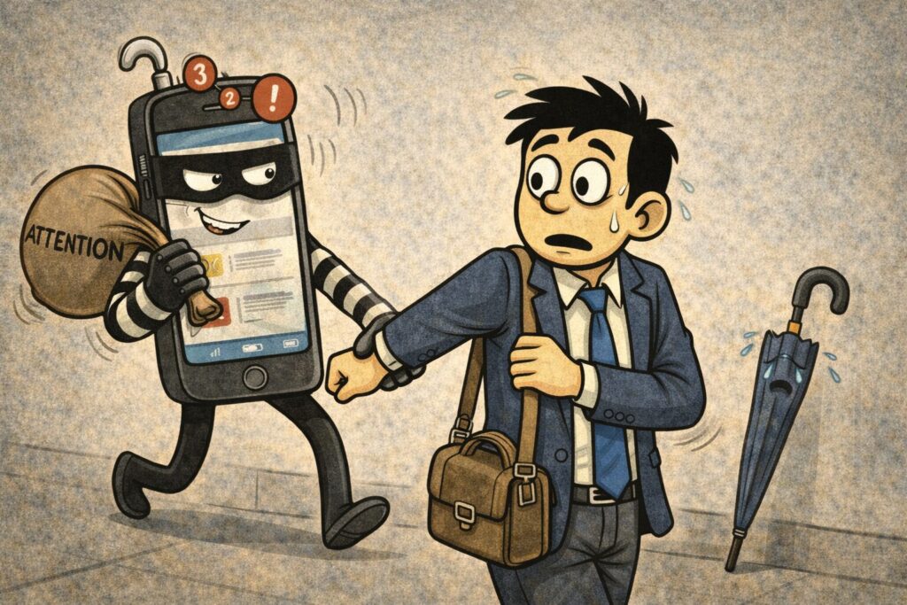 スマホは便利ですが、あなたの注意力を少しずつ盗んでいきます。