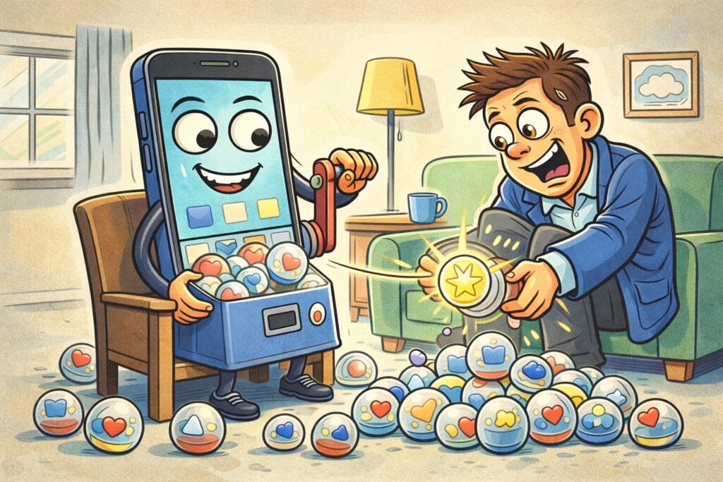 この“当たり外れ”が厄介で、脳は毎回同じ報酬より、不規則に出る報酬に弱い。