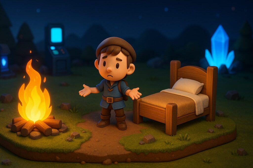 日々のダンジョン攻略に忙しい私たちこそ、ちゃんと「焚き火」と「ベッド」を自分で用意しておきたいものです。