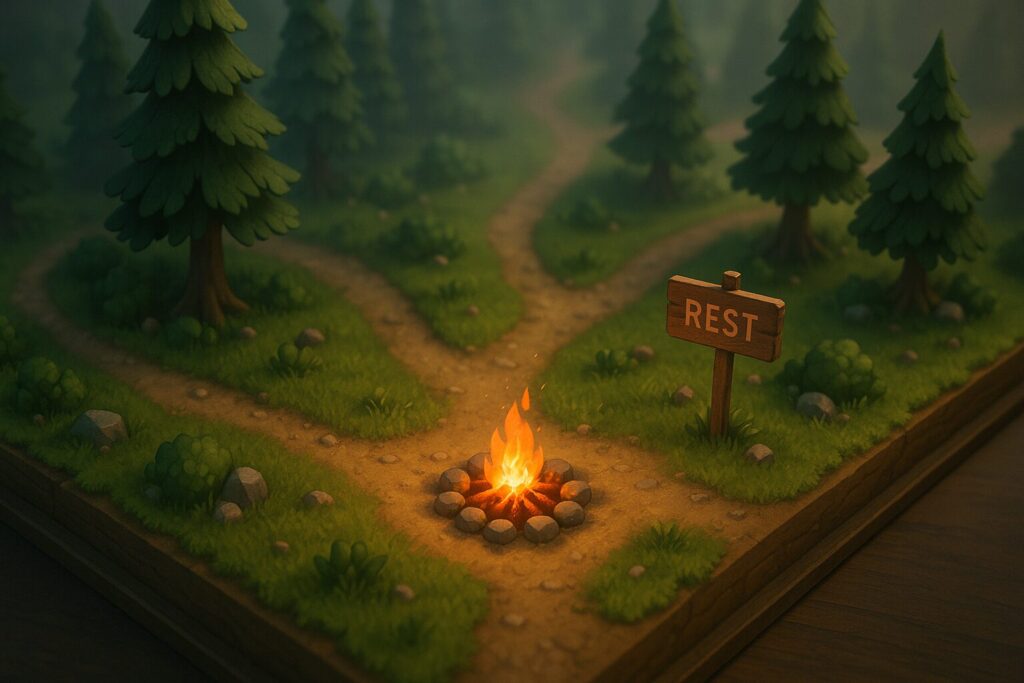 - 戦闘や探索から離れられる心理的な安全地帯