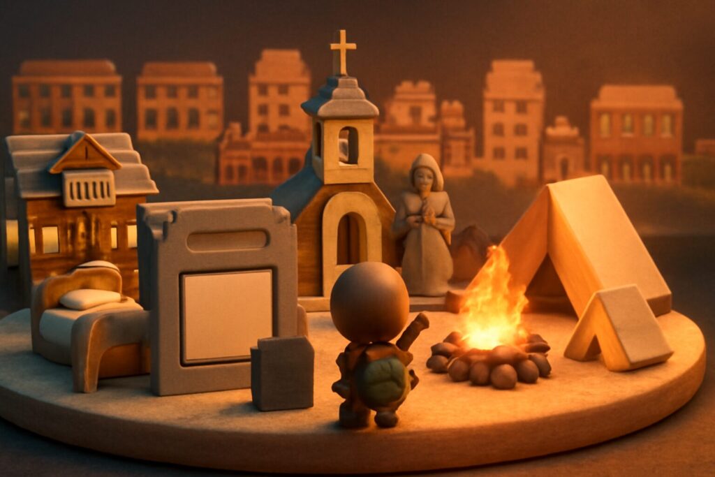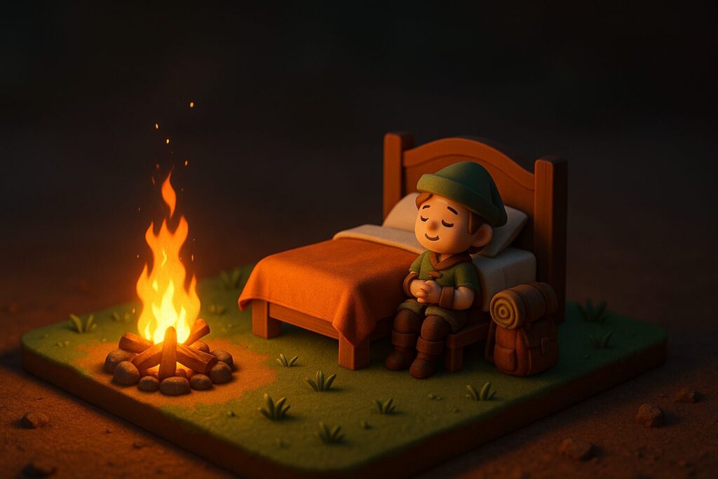 では、その「メンタルを守る場所」として、なぜ焚き火やベッドが採用されやすいのでしょうか?