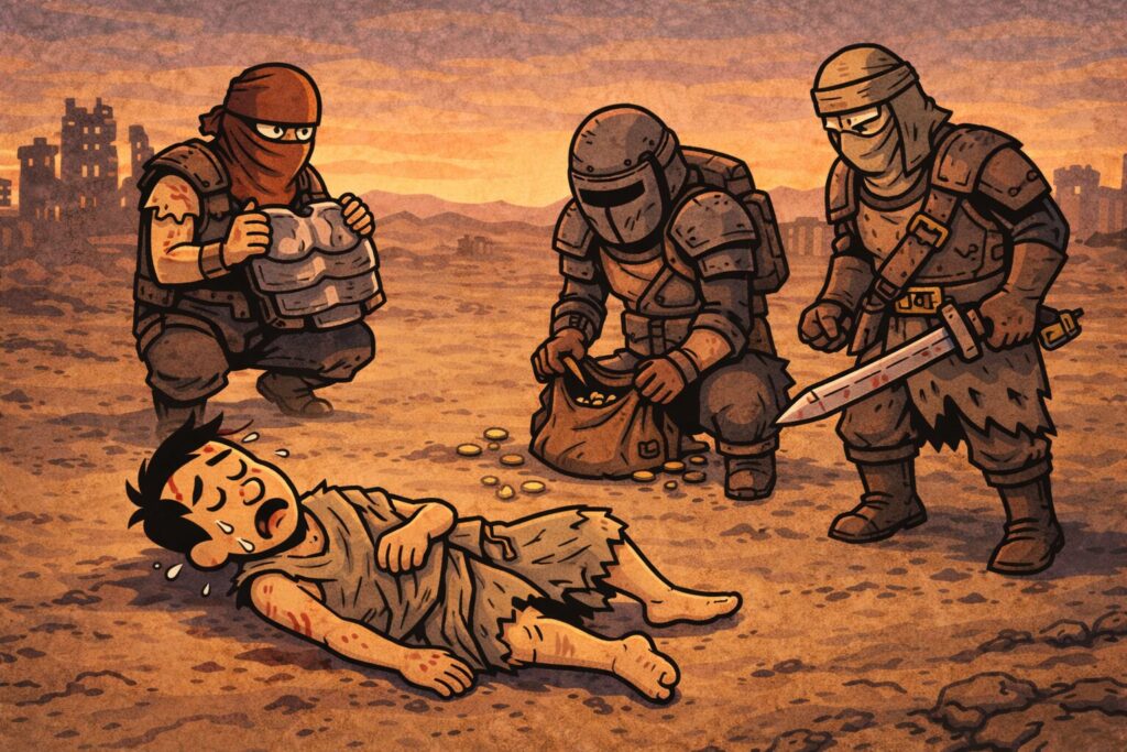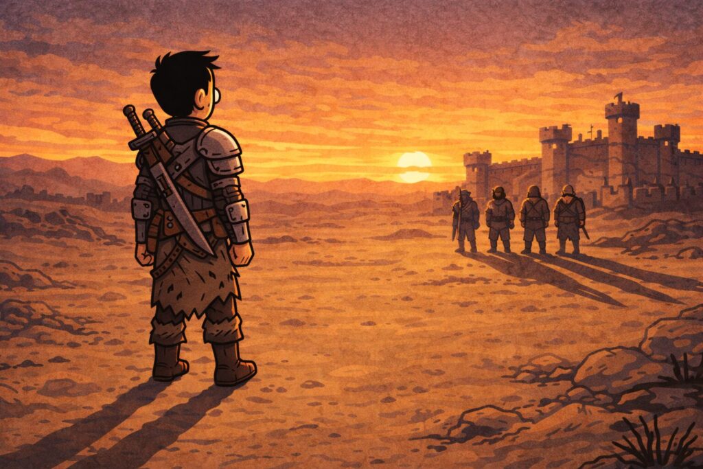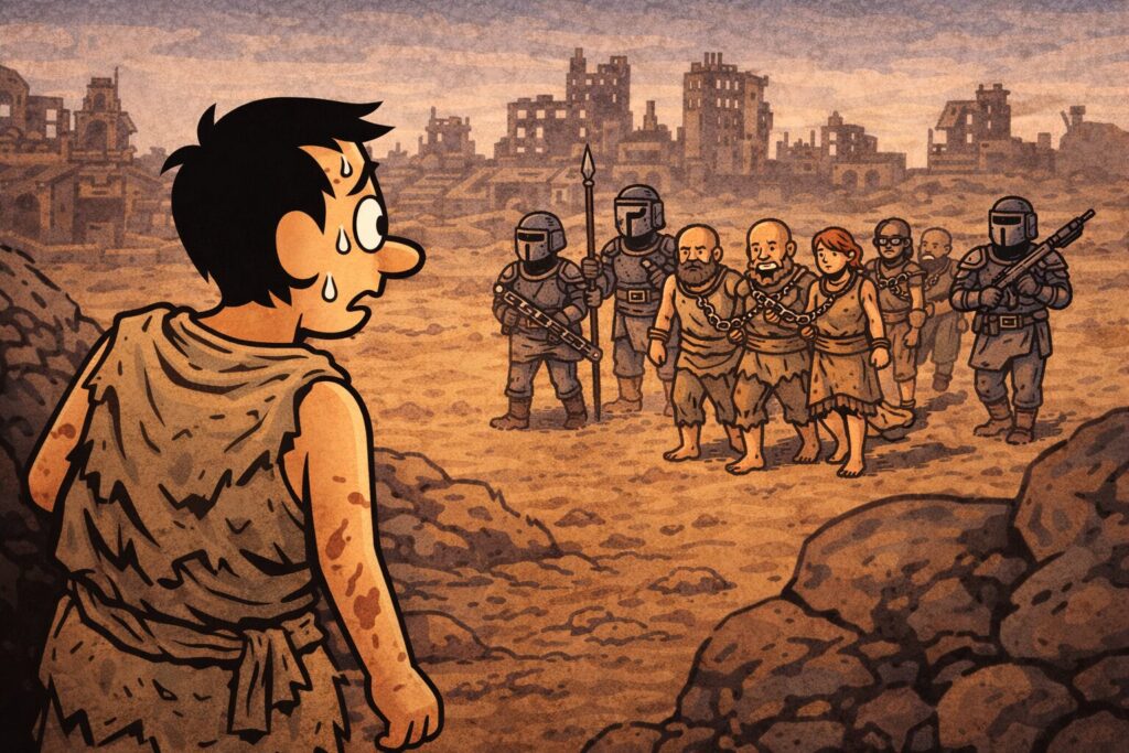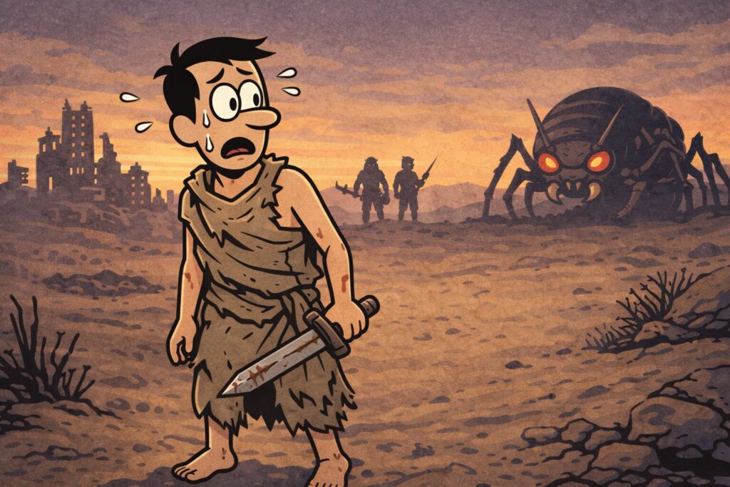 周囲には、見るからに強そうな野盗、カニバル、奴隷商人、巨大な虫、そして「近づいたら人生終了」系の生き物たち。
