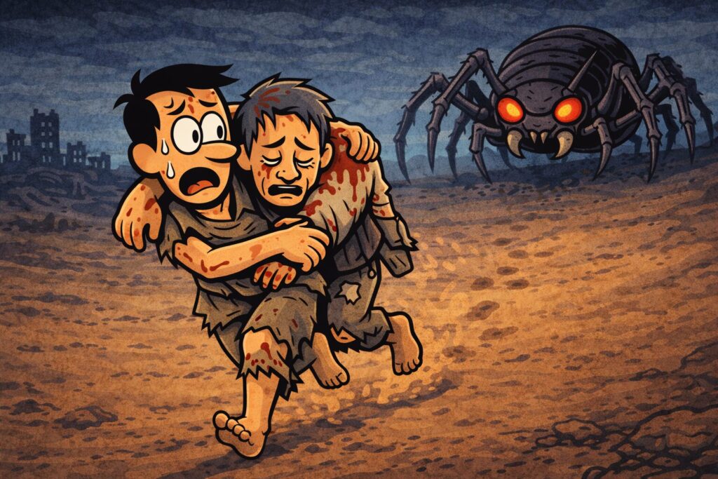 あなたは仲間を肩に担ぎ、必死に歩く。