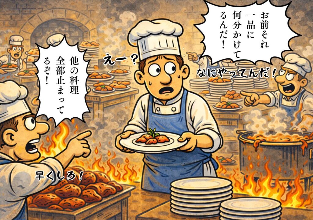 料理してるように見えて、 やってることは「流れを止めないこと」