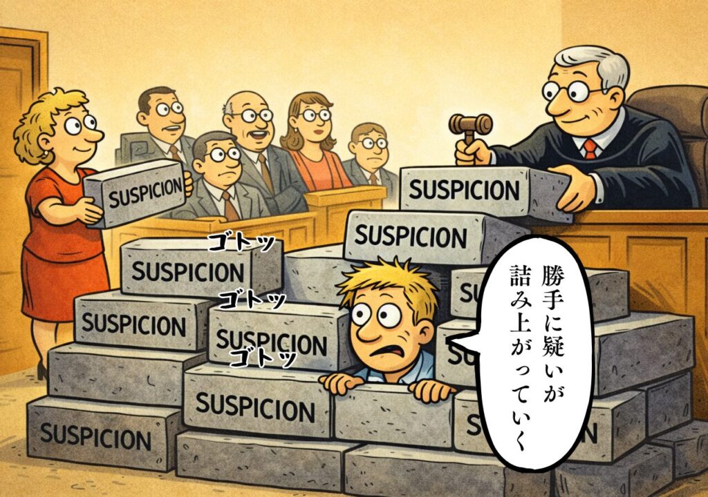 「でも怪しいので有罪に近づきます」