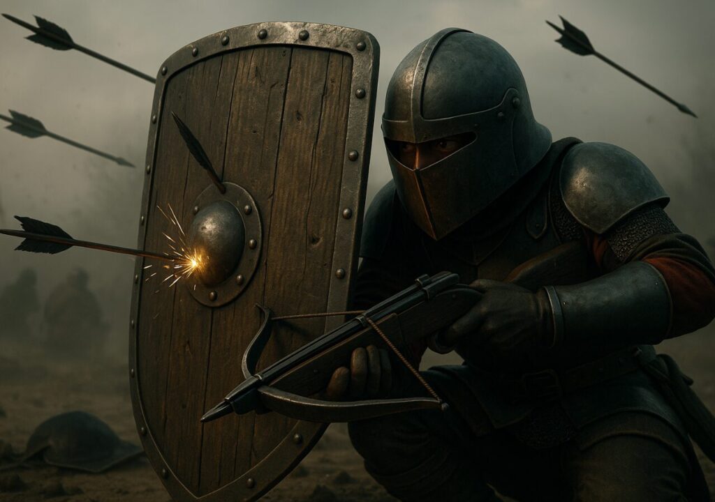 弩兵はパヴィス(大盾)の有無で命運が分かれ、弓兵は予備弦の管理で戦力が左右されました。