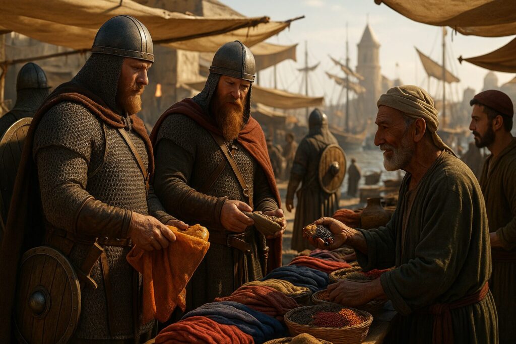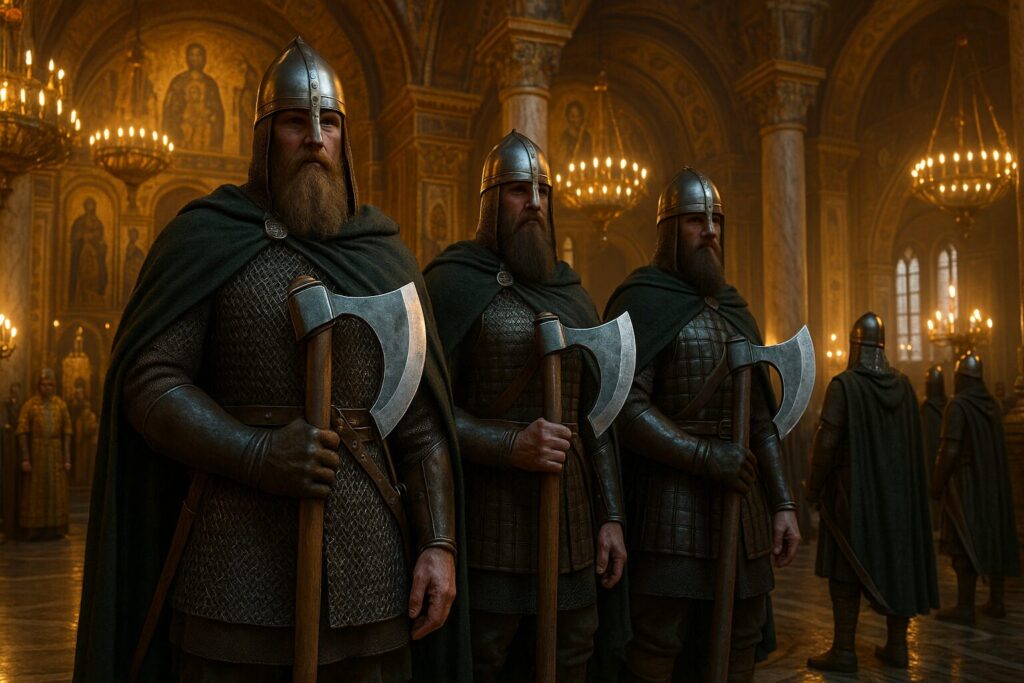 スカンディナビアやルーシ出身の大柄な歩兵が、金銭だけでなく贈与(ギフト文化)までもらい、宮廷儀礼に参加しました。