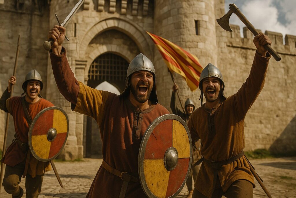 アラゴン系の軽歩兵集団アルモガバル(カタルーニャ傭兵団)は、ビザンツ帝国に雇われてアナトリアでトルコ軍と戦い、その機動戦術で名を上げました。