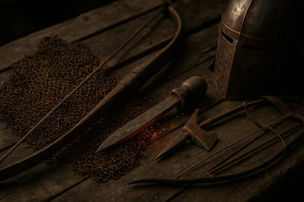 中世の野営地は雨と泥にまみれ、湿気と血と煙が混ざる空気の中では、金属はすぐに錆び、弓の弦も一晩で切れることがありました。