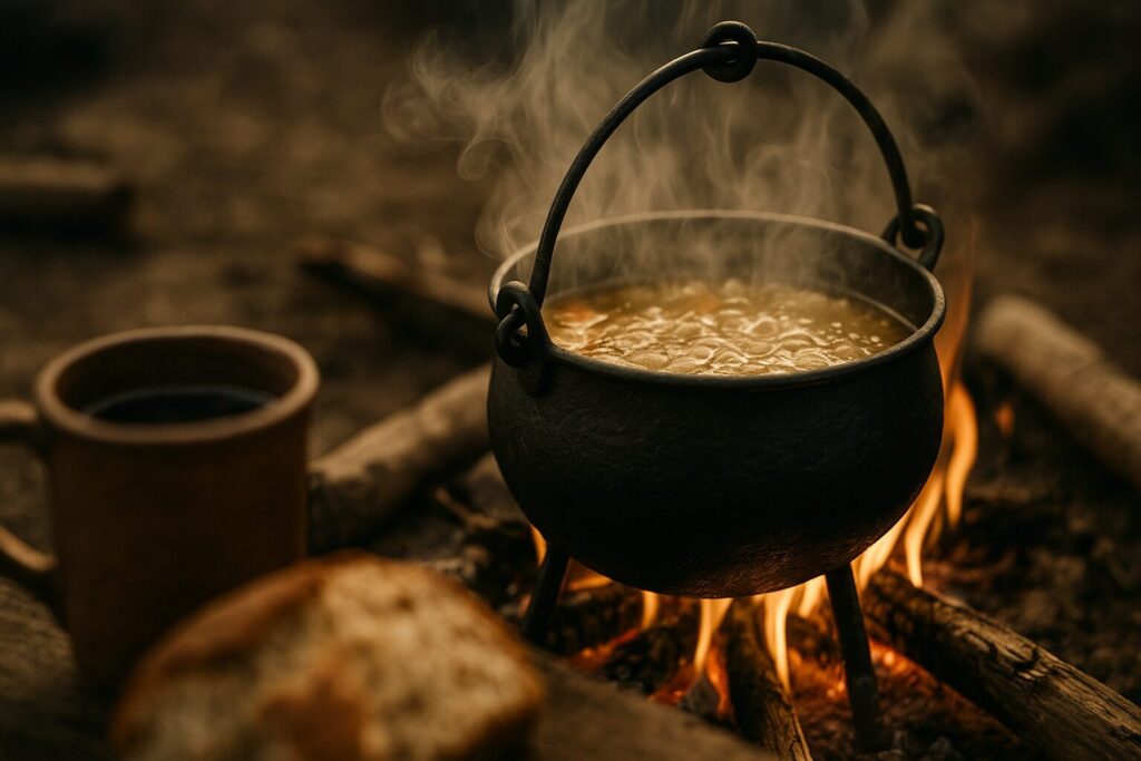 - 夕方〜夜: 部隊ごとに大鍋を囲み、穀物と豆の煮込み+パンで一日終了