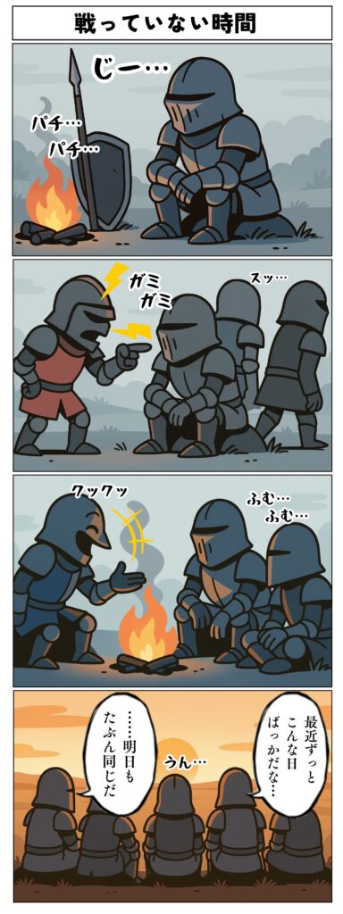 戦っていない日の軍営は、緊張と退屈と小さな感情が入り混じった、驚くほど人間らしい空間だったのです。