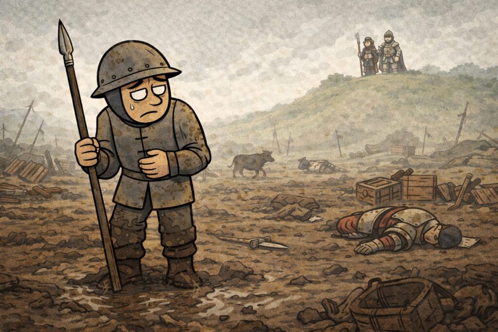 中世の戦場とは、敬意と現実が同じ場所でぶつかり合う、そんな矛盾だらけの空間でした。