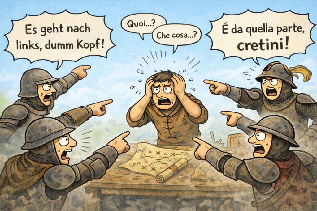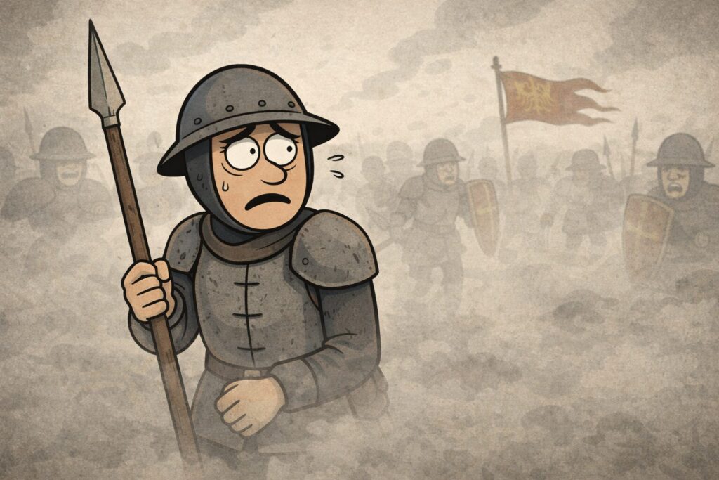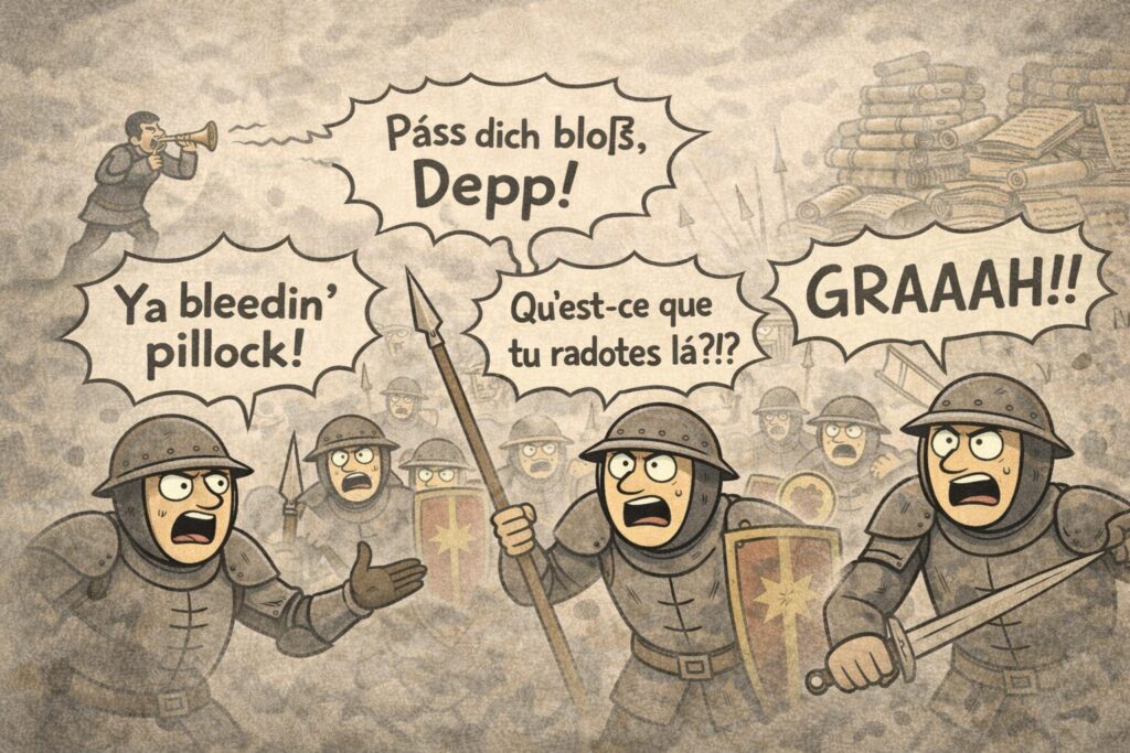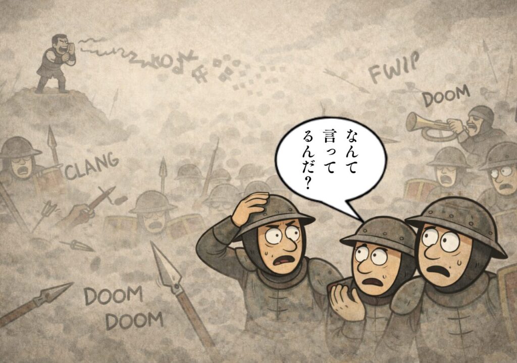 中世ヨーロッパの歩兵にとって戦場とは、「会話が成立しない現場」でした。