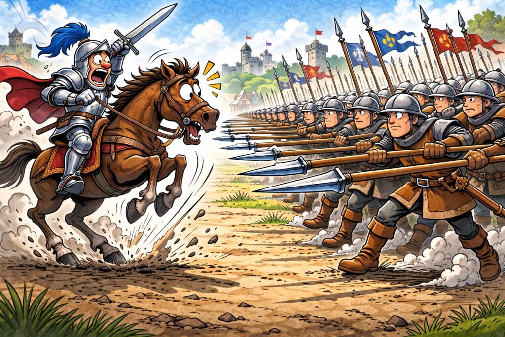 中世ヨーロッパで起きたのは、武器の進歩というより「戦い方の基準」が変わる出来事でした。