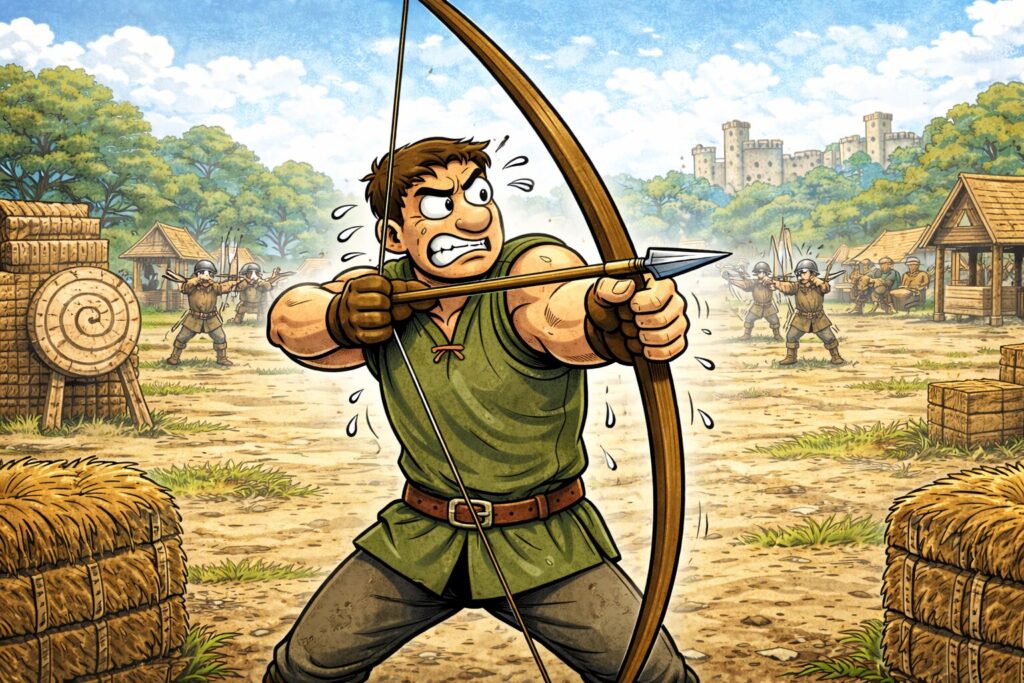 熟練弓兵は幼少期から弓を引き続け、体そのものを鍛え上げていました。