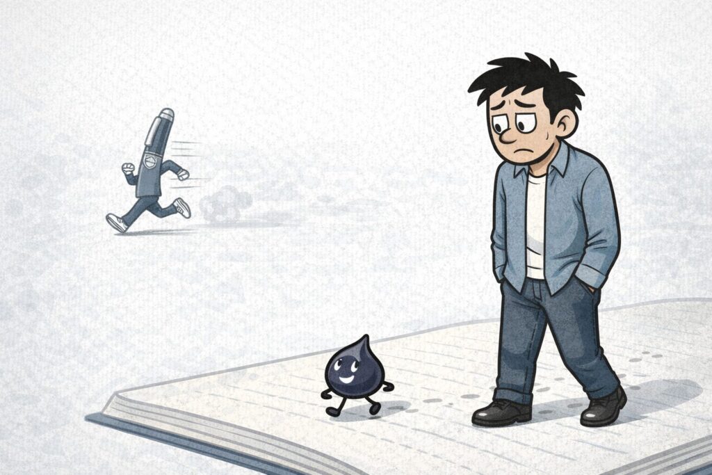インクが溝を伝って歩いてくるように、思考もまた、少し遅れて紙の上に現れます。
